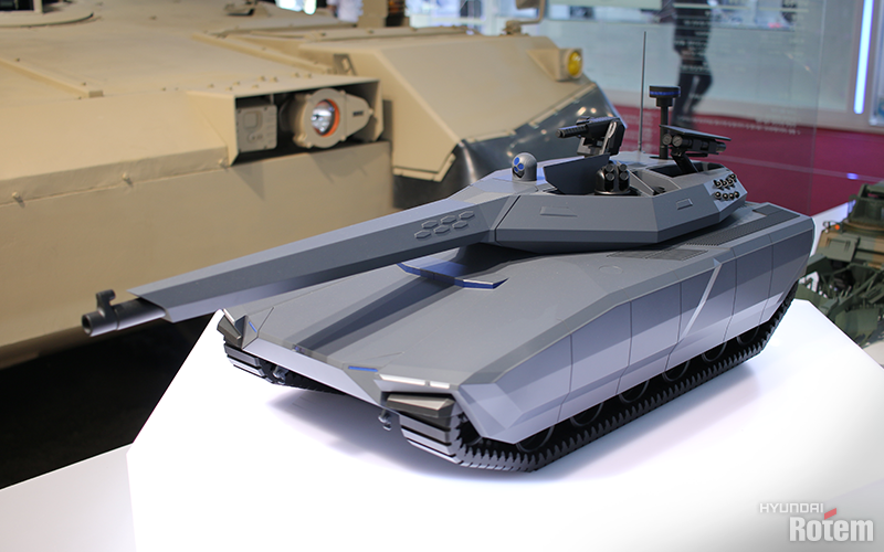 현대로템은 전력화된 K2전차에 이어 인공지능 기반의 차세대 전차도 개발 중입니다. 차세대 전차는 ADEX 2019에서 미래적인 디자인으로 첫 공개되며 큰 주목을 받았는데요. 차세대 전차에는 인공지능 기반 차량운용체계, 유무인 복합 운용기술, 능동방호장치, 다목적 드론 등 첨단 장비가 대거 탑재될 예정입니다.