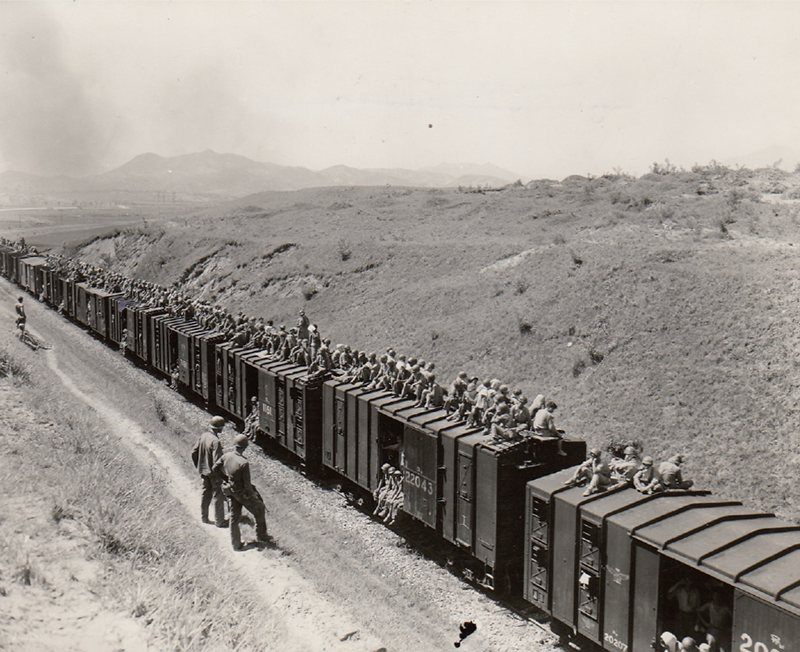 1950년 당시 우리나라의 철도인은 약 3만 명이었습니다. 전쟁 발발 직후 긴급국무에서 비상동원령에 따라 철도인의 참전이 결정되었고, 그중 2/3인 1만 9,300여 명의 철도인이 군무원 신분으로 참전하여 757일간의 수송 작전을 펼쳤습니다.