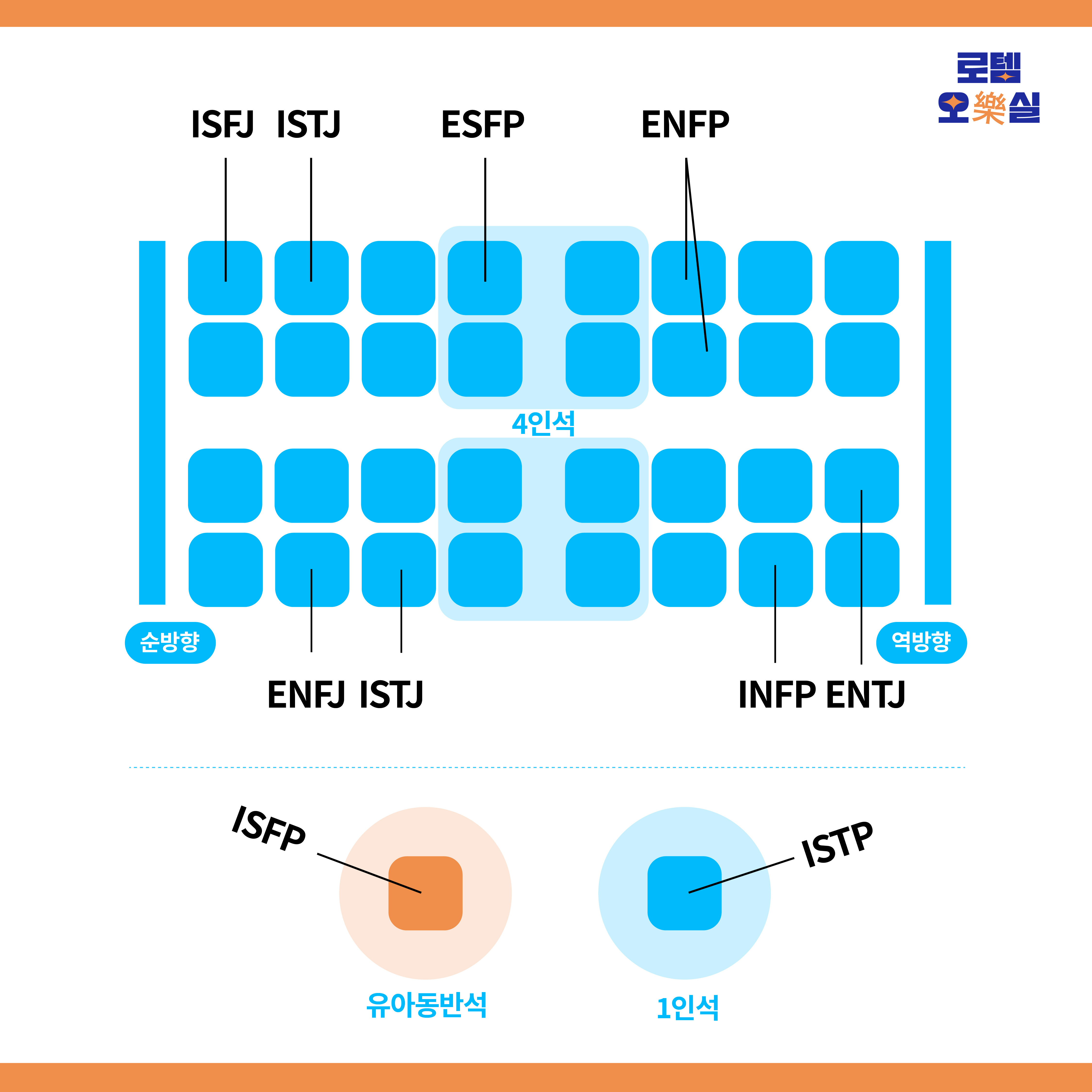 묵묵하게 잘 견뎌내는 INFP는 아무도 선택하지 않는 가운데 역방향 자리로 묵묵히 클릭해요. 길어봐야 2~3시간인데 무엇이 중하랴. 헤드셋을 쓰고 자신만의 세계로 빠지면 그만인 것을! 끝까지 남아있는 자리는 INFP의 것.