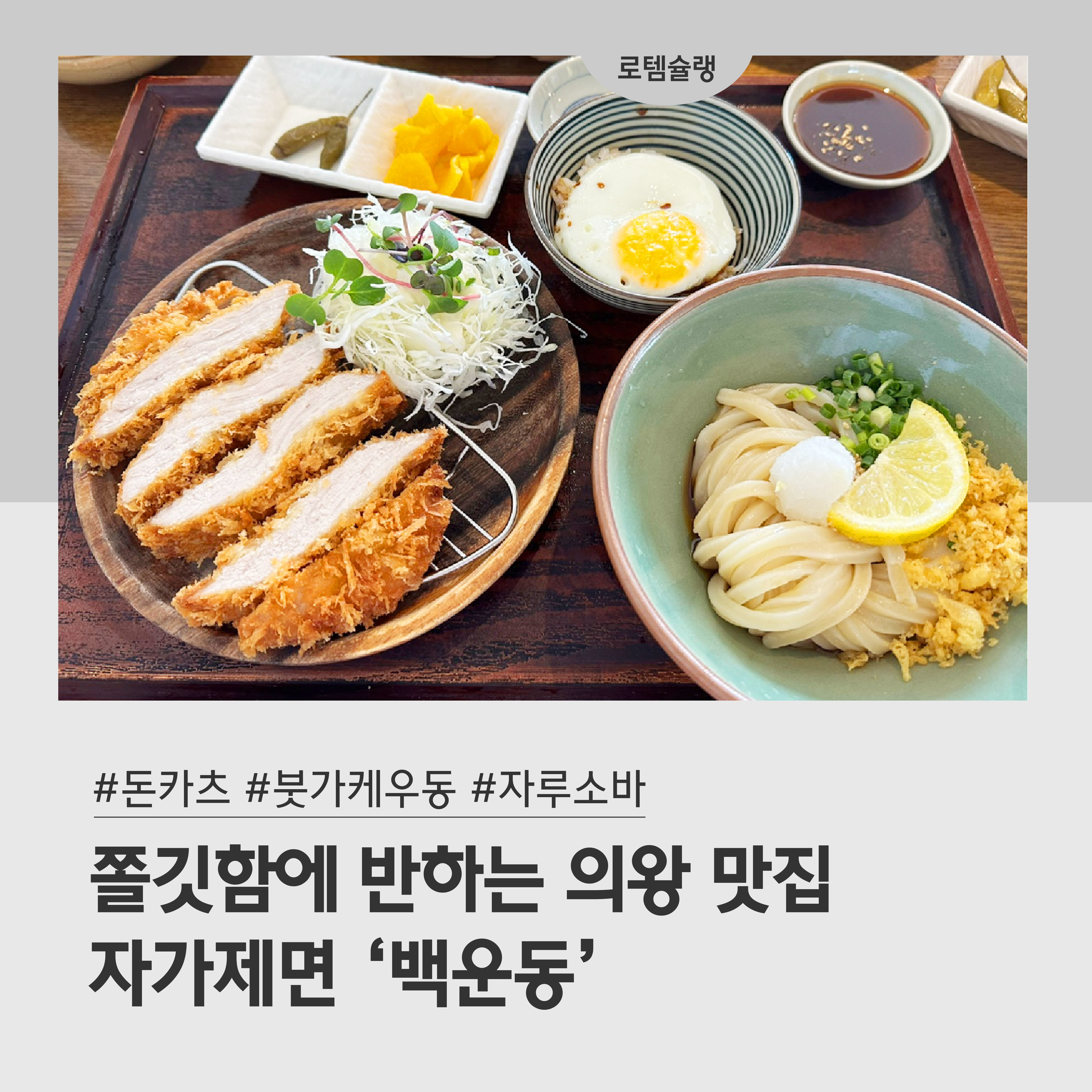태풍이 지나고 늦더위가 다시 기승을 부리고 있는데요. 맛있는 음식으로 보신하는 것만큼 쉬운 피서도 없는 것 같아요. 이번달 로템슐랭은 더위로 달아난 입맛을 돌아오게 하는 자가제면 ‘백운동’입니다. 쫄깃한 면발의 붓가케 우동과 부드러운 튀김옷과 고깃살이 일품인 돈카츠까지, 함께 하시죠.