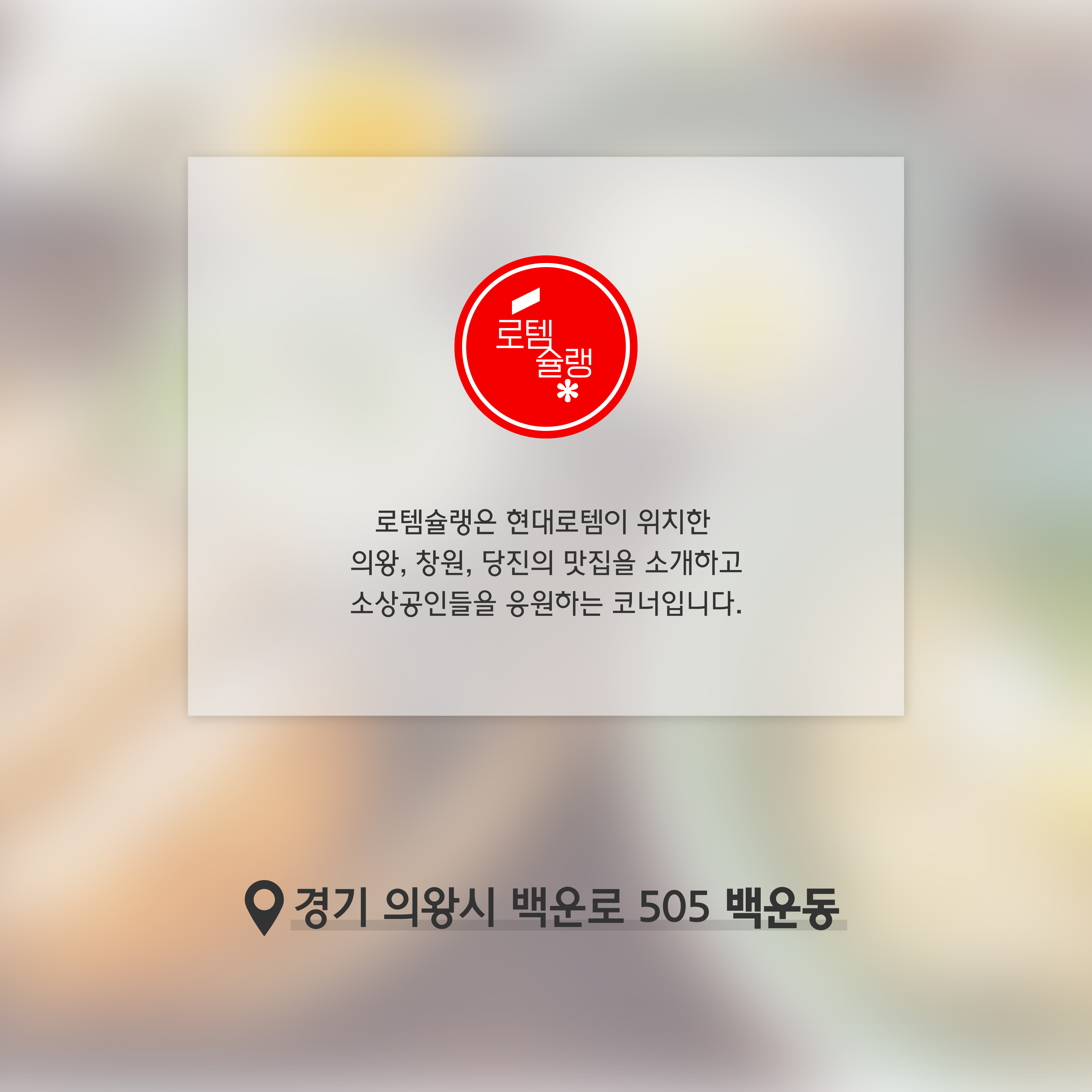 ‘로템슐랭'은 현대로템이 위치한 의왕, 창원, 당진에서 가족, 친구들과 방문하기 좋은 맛집을 소개하는 코너입니다. 특히 코로나19로 오랜 기간 힘들었던 소상공인들을 응원하기 위한 코너이기도 합니다.