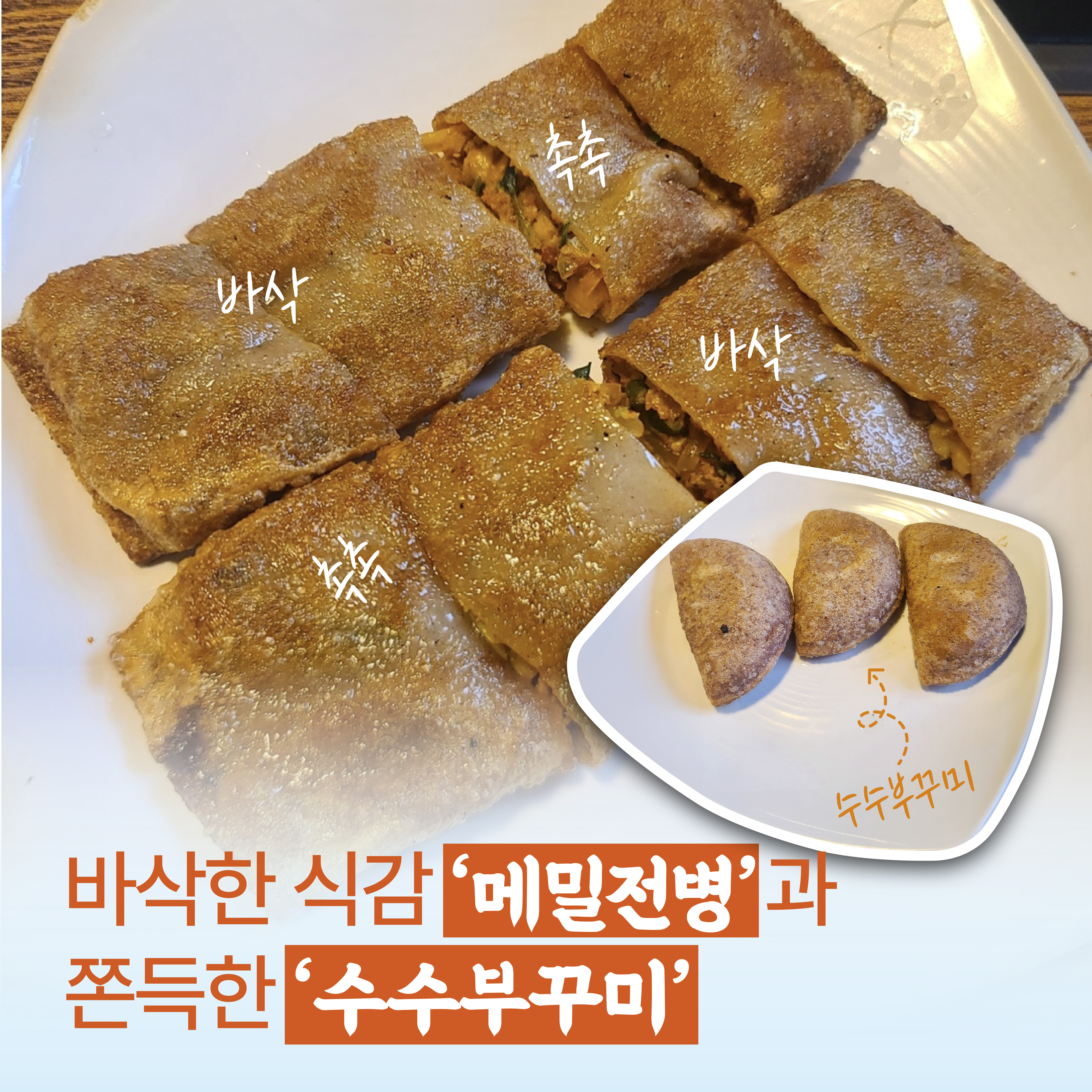 받자마자 김이 모락모락 나던 메밀전병도 먹어봤어요. 겉은 바삭하고 속은 촉촉해 그야말로 ‘겉바속촉의 정석’이라고 할 수 있는데요. 전병소 양념이 어찌나 맛있던지 소를 밥을 비비면 고소하고 짭쪼름한 맛이 한 단계 더 올라가요. 꼭 시켜야 할 메뉴로 추천합니다.